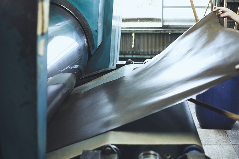 林五と富田興業がレザー作りをオーダーしたのは、古くから革の産地で知られている兵庫県たつの市の中嶋皮革工業所。この地域は揖保川と林田川という河川に挟まれ、革を鞣す作業に欠かせない地下水の宝庫。それに加えて60余年に渡って高品質なレザーを生み出し、国内だけでなく海外のクライアントをも魅了する高い技術力を持っているタンナーです。