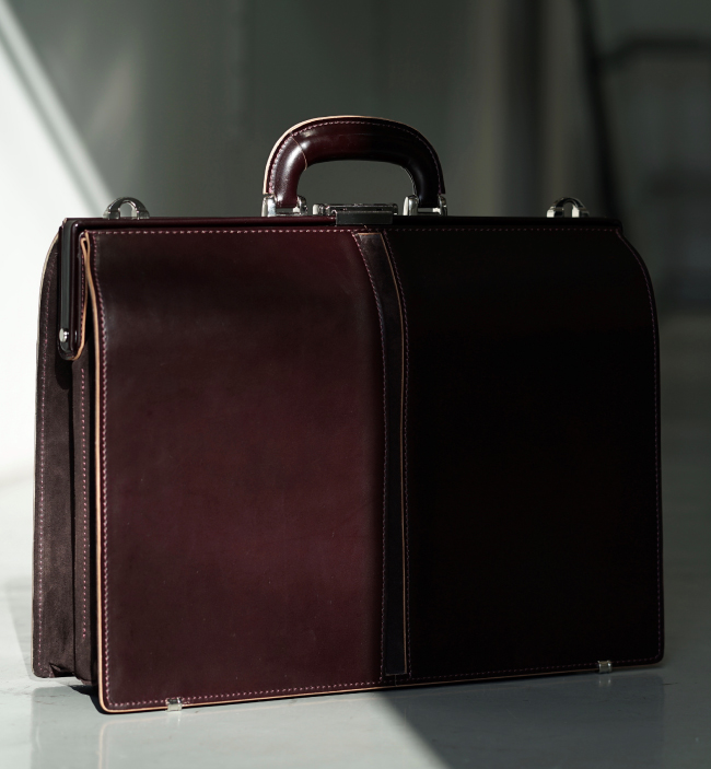 熟練の技を持つごくわずかな職人が、今もなお継承される製法でのみ生み出すことのできる優雅な形状や重厚感。正真正銘本物の「鞄」は、格式高くも温かい佇まいが圧倒的な存在感を放っています。いつの時代にあっても普遍的で恒久的なものであり続ける、伝統製法による本格鞄。本物を提供し続けることこそ私たちの使命であると考えています。