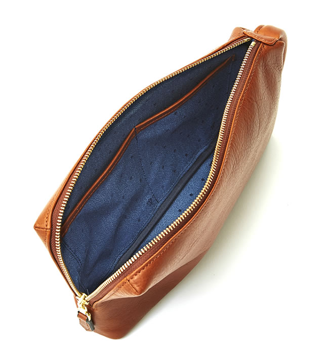 iPad miniなどの小型タブレットやA5サイズノートが収まるレザーポーチ。