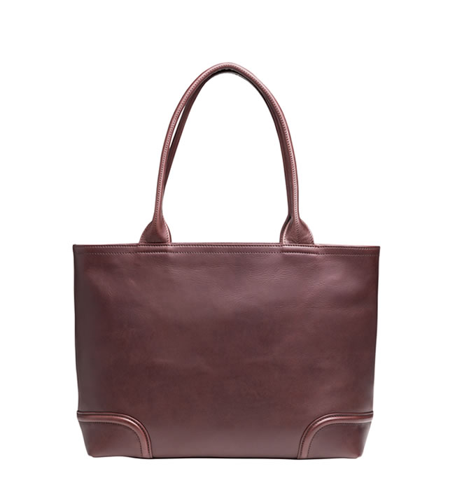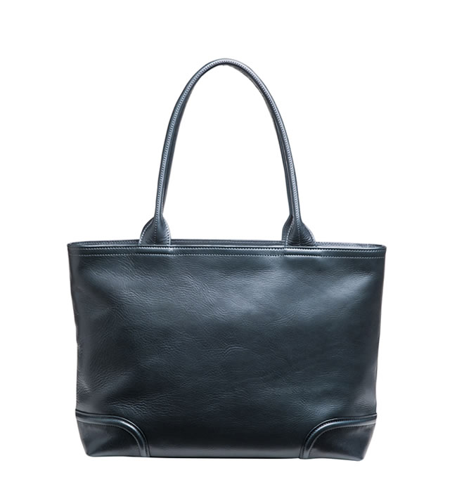 書類やPCが倒れずに収納できるすっきりしたシルエットです。底部は馬具にも用いられる伝統的な補強技法「肉盛り」によって形状をキープし、長期間の使用に耐えられるタフな仕上がり。一枚裁ちの革を折りたたんで作られたこだわりのハンドルは芯材を使わずに手や肩に優しくフィットし、肩からずり落ちにくいのが特徴です。
