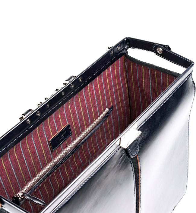 スムーズに開閉されるよう型取りされた独特な丸みは、経験で育まれた確かな技術で優雅なラインが描かれ、他では真似できない圧倒的な重厚感と信頼感も感じさせてくれます。型崩れが起きにくいようにしっかりとクセ付けされ、機能的な仕分けの間仕切りも芯となり、堅牢性が非常に高い仕上がりとなっています。