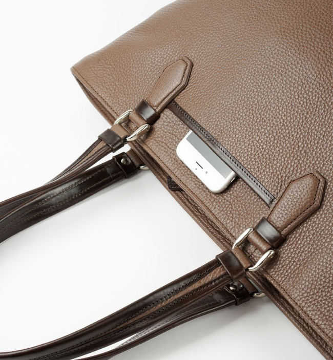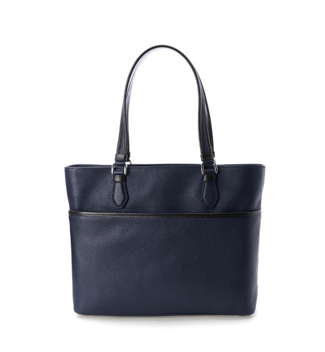 オールレザーの上質なトートは、ジャケットなど軽やかなビジネススタイルに違和感なく溶け込みます。
