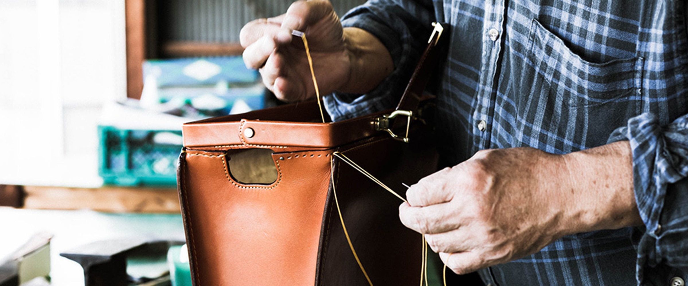 それぞれの革の特性に合わせて、ひとつずつ丁寧に作ることでこそ、良い鞄になるというのが私たちと作り手を繋げる共通の思い。手仕事の均一化・安定化を向上させるために現代の機材を取り入れつつ、昔ながらの熟練技術にこだわるのは、使い手にとって長く愛される鞄作りを真摯に目指すからこそなのです。