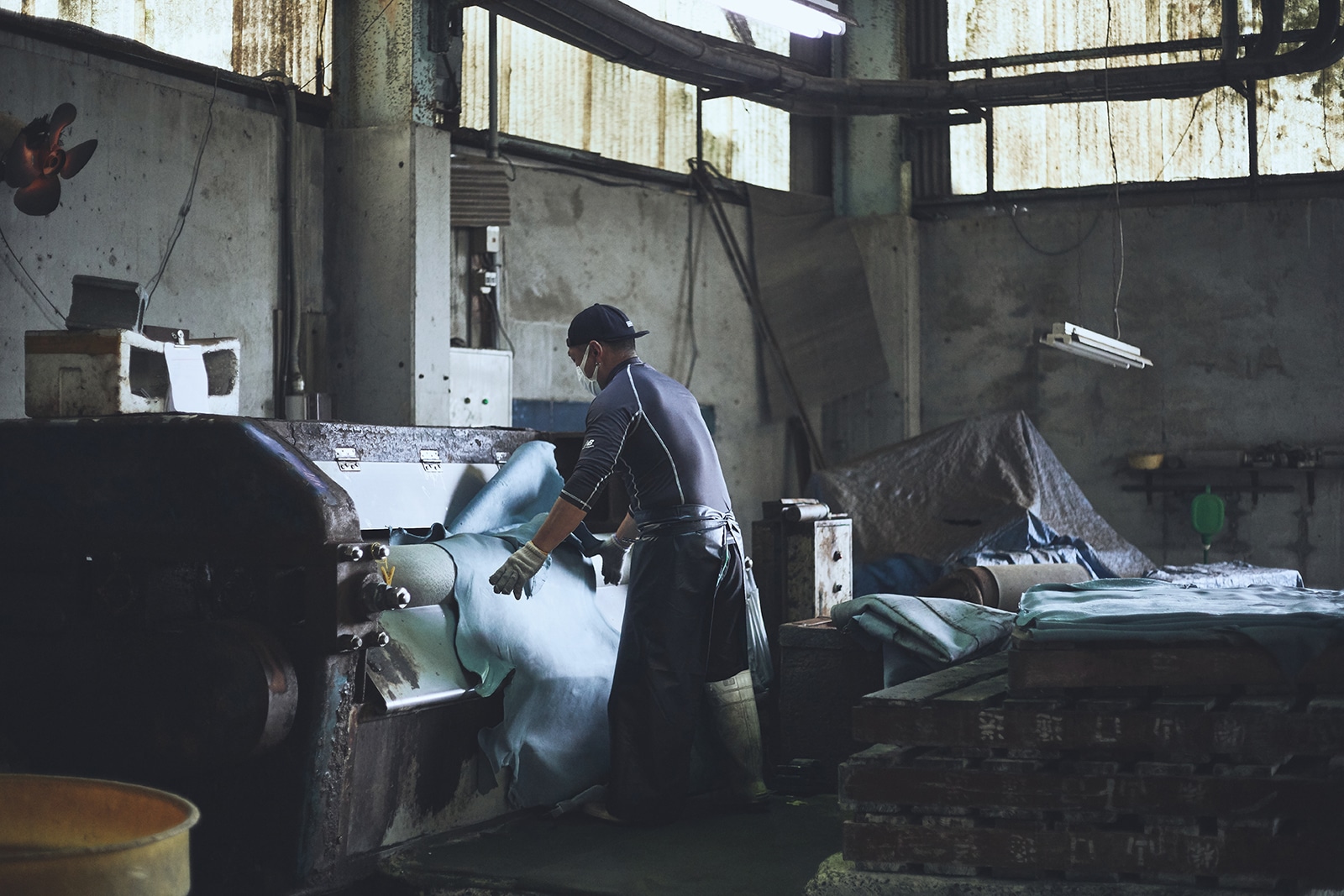 林五と富田興業がレザー作りをオーダーしたのは、古くから革の産地で知られている兵庫県たつの市の中嶋皮革工業所。この地域は揖保川と林田川という河川に挟まれ、革を鞣す作業に欠かせない地下水の宝庫。それに加えて60余年に渡って高品質なレザーを生み出し、国内だけでなく海外のクライアントをも魅了する高い技術力を持っているタンナーです。