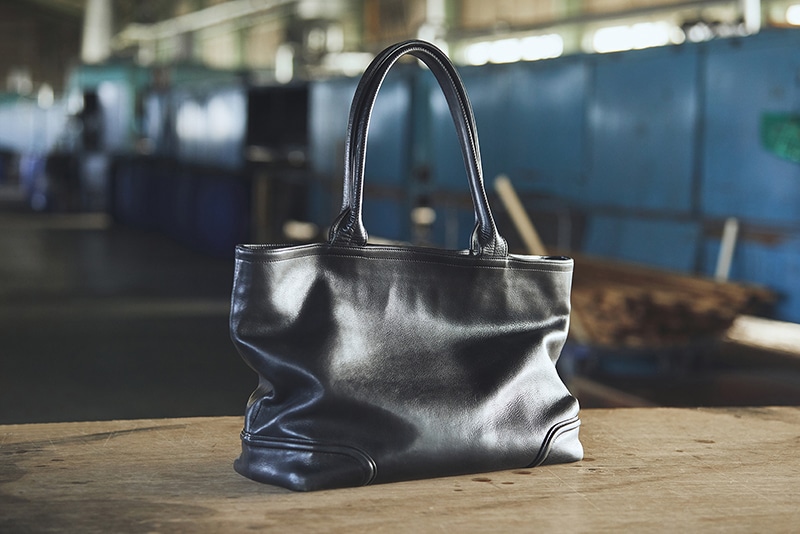 出来上がった革は縫製職人の元へと運ばれ、ようやく一つのバッグが仕上がります。厚手のタフなレザーは毎日のハードな使用にも何事もなく応えてくれ、時間を経過するとともに質感がよりソフトに。例え引っ搔き傷が付いたとしても、擦れば馴染んで目立たなくほどの堅牢性を誇っています。また、ハンドルやボディといったよく手に触れる部分は、より深みのある色艶へとエイジング。まさに使う者の人柄を映し出すように、オンリーワンのバッグへと進化するバッグは、一生を付き合っていける相棒になってくれます。原革からスタートした物語はここで終わりを迎えるわけではありません。デザイナーや職人の想いを紡いだバッグは、ユーザーの手に渡ってからがストーリーの始まりです。