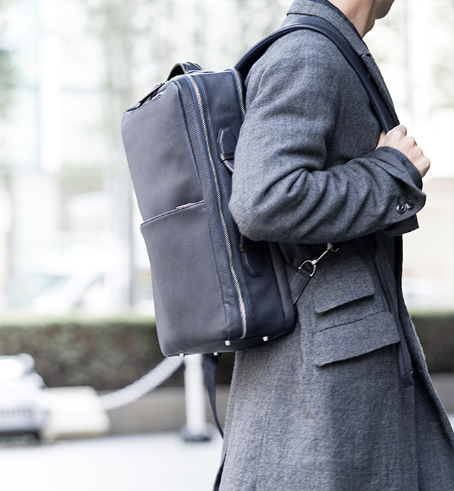 才色兼備な新しいビジネスバッグのスタイルです。丸みを帯びた柔らかいフォルムがレザーの上質感を際立たせ、内外に配された機能的なポケットはビジネスシーンをしっかりサポート。時代に即したカジュアル化を受け入れながらも、ビジネスバッグに求められる品位と実用性をきちんと両立させるのは、ビジネスバッグを長く作ってきた私たちのこだわりです。