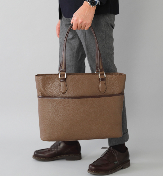 才色兼備な新しいビジネスバッグのスタイルです。丸みを帯びた柔らかいフォルムがレザーの上質感を際立たせ、内外に配された機能的なポケットはビジネスシーンをしっかりサポートします。時代に即したカジュアル化を受け入れながらも、ビジネスバッグに求められる品位と実用性をきちんと両立させるのは、ビジネスバッグを長く作ってきた私たちのちょっとしたこだわりです。