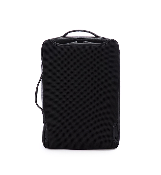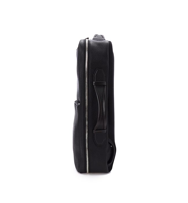 横にもってブリーフケースとして使用する時は、リュックの肩ベルトは背面ポケットにスッキリ収納できる仕様です。