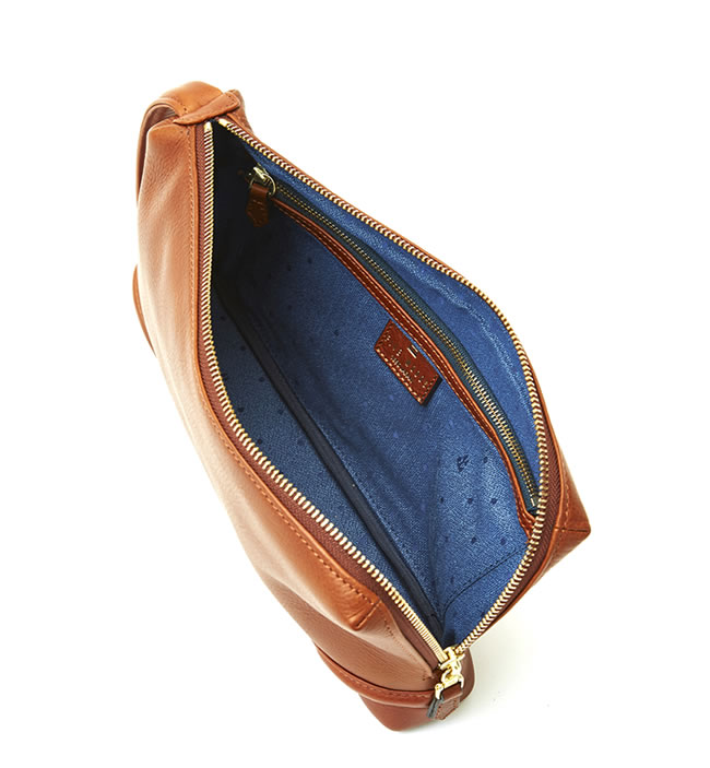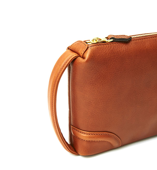 iPad miniなどの小型タブレットやA5サイズノートが収まるレザーポーチ。