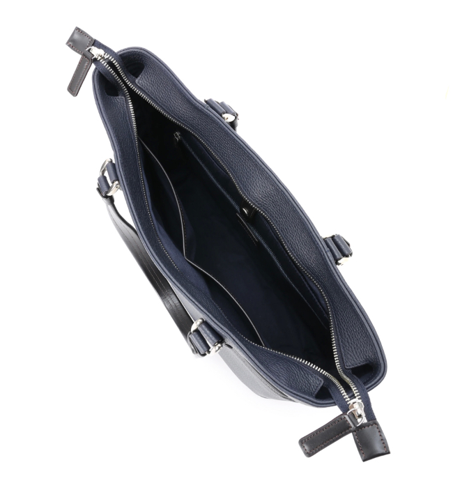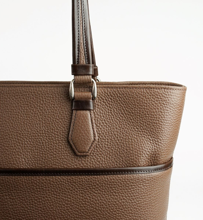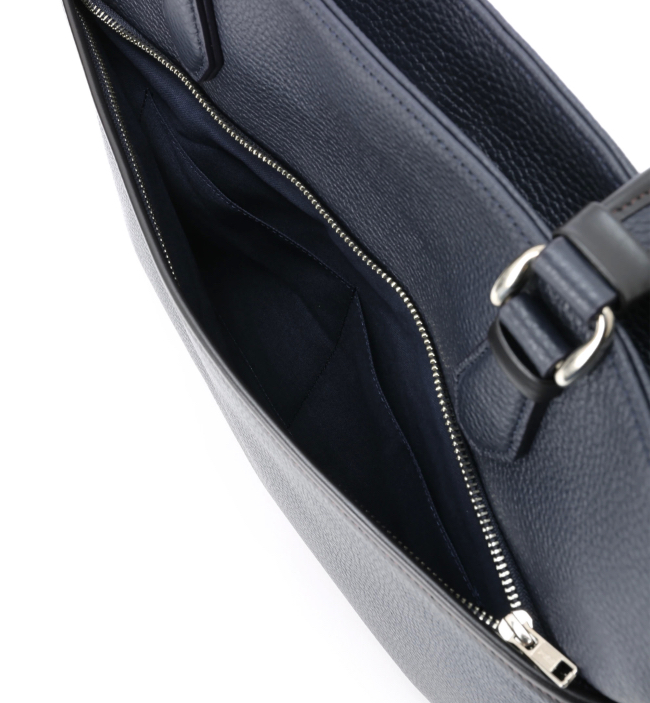 オールレザーの上質なトートは、ジャケットなど軽やかなビジネススタイルに違和感なく溶け込みます。