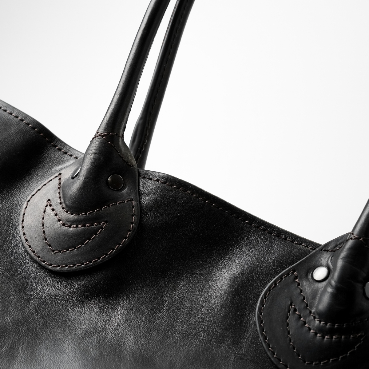 独自に開発した茶芯ホースハイド(馬革)で表現した、洗練のアメリカンヴィンテージ。クラシカルなトートバッグをベースに、ブラック一色でクールに纏め上げました。