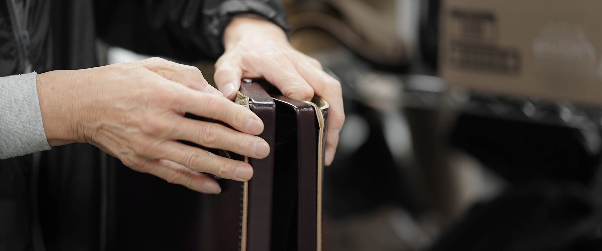 それぞれの革の特性に合わせて、ひとつずつ丁寧に作ることでこそ、良い鞄になるというのが私たちと作り手を繋げる共通の思い。手仕事の均一化・安定化を向上させるために現代の機材を取り入れつつ、昔ながらの熟練技術にこだわるのは、使い手にとって長く愛される鞄作りを真摯に目指すからこそなのです。