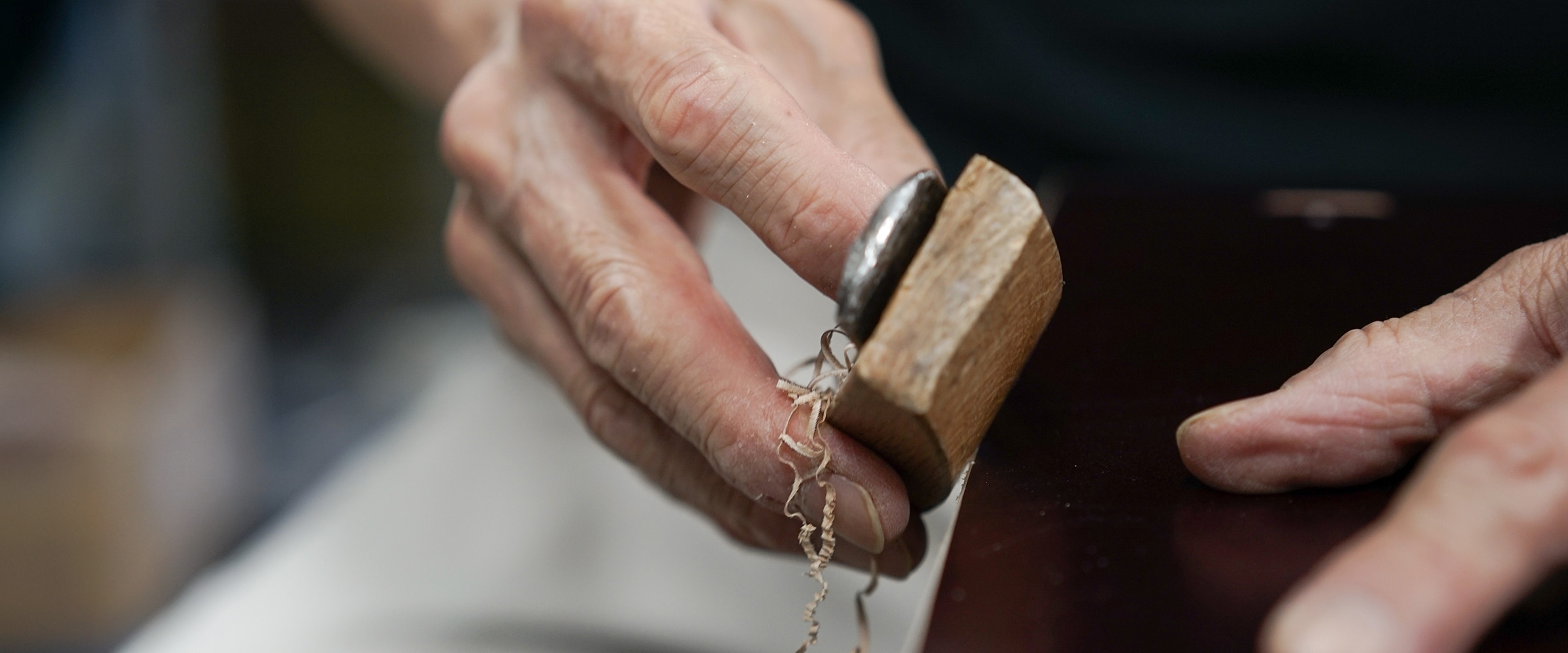 豊かな表情を生かし、エイジングによってさらに深みのある表情になることを想像しながら、職人の経験と腕が発揮されるのです。